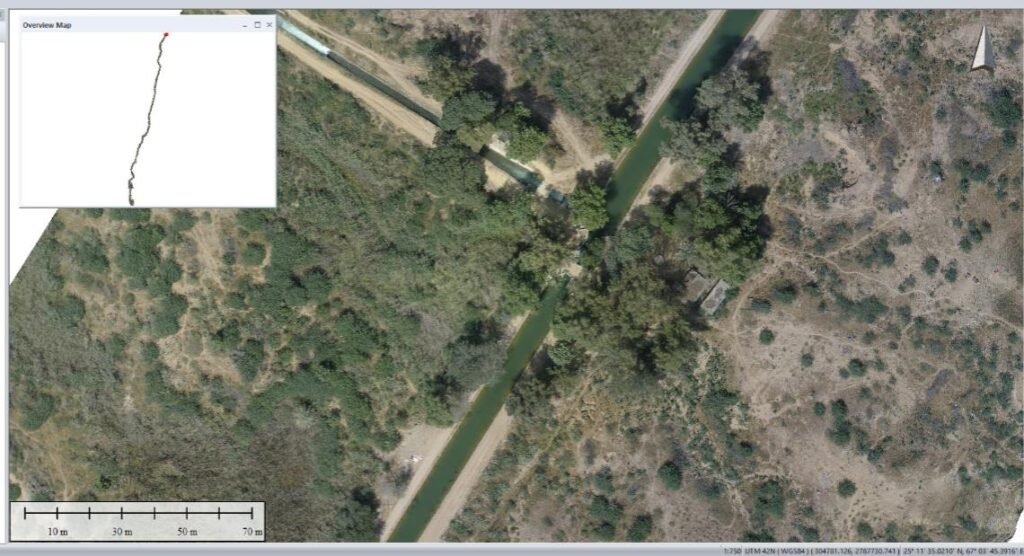 The canal’s terrain presented numerous difficulties, including inaccessible areas and inhospitable environments. Drones proved to be the perfect solution, as they could effortlessly navigate the entire length of the canal and capture high-resolution aerial imagery. Through advanced photogrammetry techniques, the drone’s onboard cameras collected vast amounts of data, including detailed orthomosaic images, a digital elevation model (DEM), and other essential topographic information.